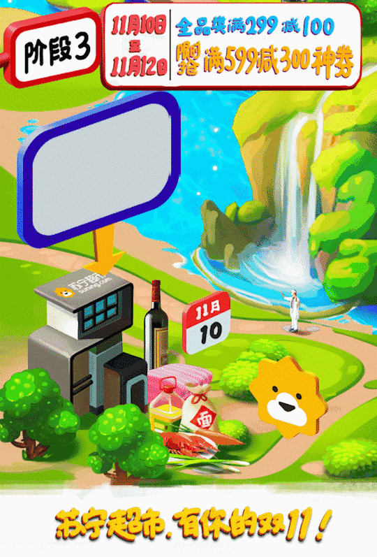 今年蘇寧超市“雙11”為期12天,從11月1日—11月12日,其間將通過短視頻、直播、創(chuàng)意海報、攻略圖、內(nèi)容導購、互動游戲、搶紅包等形式增強用戶體驗和參與感。